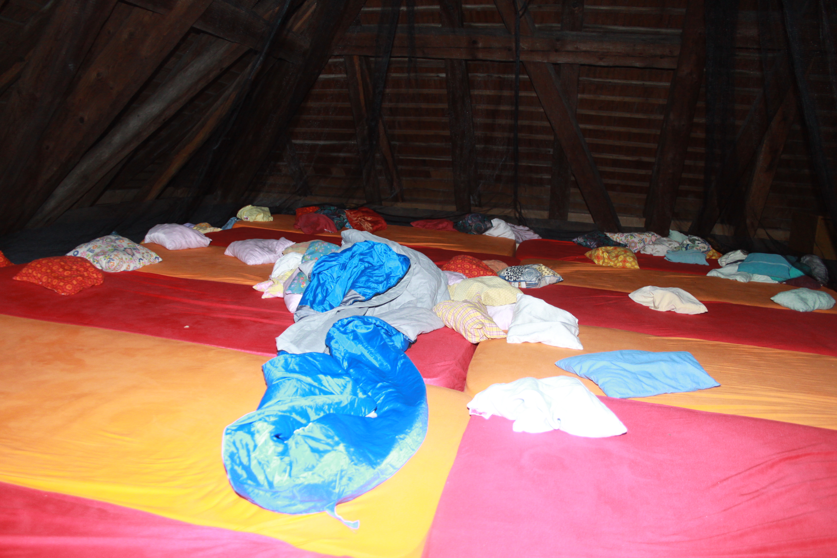 Vor dem Traumschloss liegen riesige Softbaustein, mit denen sich eine eigene Burg bauen lässt. Daneben ist mein Schlafplatz: eine grosse Matratzenwiese mit vielen Kissen. Hier finden tagtäglich Kissenschlachten statt. Und auf diesem Schlachtfeld habe ich geträumt. Bei angenehmer Temperatur. Zumindest bis mich in aller Herrgottsfrüh das Geräusch der flatternden Heidegger Fahne geweckt hat. Doch Reporter Bossart will nicht klagen: Ein Windchen könnte bei der angekündigten Hitze nicht schaden.