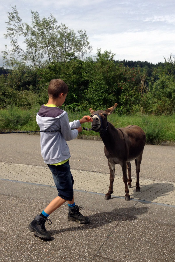 Die Reise konnte ihr übrigens nicht genug schnell gehen. Als Josef und Rita-Maria in Nebikon eine Rast einlegten, hatte «Beauty» bereits wieder Stalldrang. Zum Glück hatte «Eseltreiber» Florian schnell ein Rüebli zur Hand.